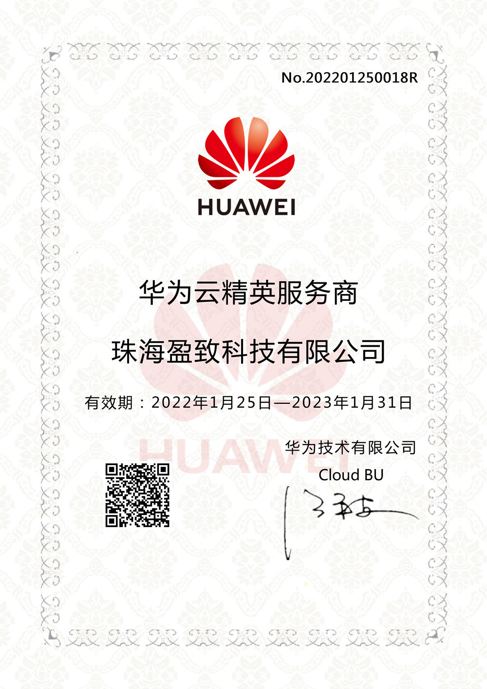 祝賀!恭喜盈致科技成為華為云精英服務商~